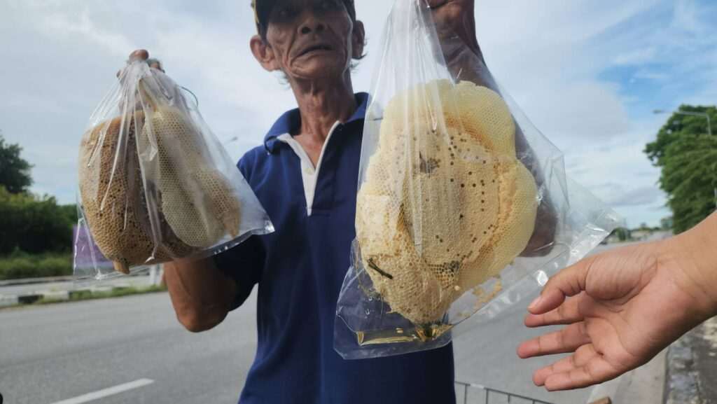 คุณตากับอาชีพตีผึ้งขายมากว่า 40 ปี เผยเคล็ดลับทีเด็ดหากจะกินน้ำหวานให้อร่อยต้องเป็นรังผึ้งแก่ถ้าจะกินทั้งรังทั้งน้ำหวานต้องรังผึ้งอ่อน เปรียบเหมือนมะพร้าว ยิ่งอ่อนยิ่งหวานยิ่งแก่ยิ่งมัน ตีผึ้งมากวาด 40 ปีเดินต่อยเป็นหมื่นๆครั้ง จนร่างกายไม่แพ้สนิทกับผึ้งแล้ว