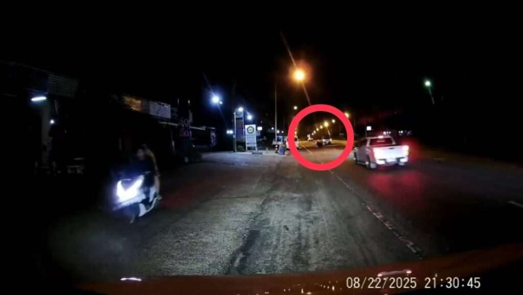 คลิปกล้องหน้ารถของวันที่ 22 สิงหาคม 2568 เวลา 21.30 น มีรถจักรยานยนต์ของวัยรุ่นชาย ได้ขับมาแล้วในขณะกำลังเบิ้ลเครื่อง อยู่ๆเกิด ลื่นล้ม จังหวะนั้นโชคดีรถกระบะ ขับตามหลังมาเบรคทัน จากนั้นก็มีเสียงผู้หญิง ที่อยู่ข้างถนนตะโกนด่าแทรกเข้ามา
