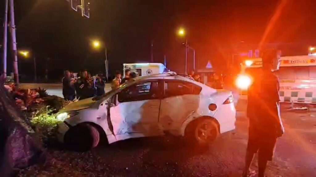ที่เกิดเหตุพบรถเก๋งmazda 2 สีขาว ทะเบียน กร4579 ระยอง ถูกชนด้านซ้าย ยุบพังเสียหายทั้งแถบ พบคนขับชายไม่ทราบชื่อนอนหมดสติไม่รู้สึกตัวอยู่ภายในรถเก๋งมีคันเบ็ด ส่วนข้างกายพบเหล้าขาว 40 ดีกรี วางอยู่เบาะหน้าด้านซ้าย เนื้อตัวผู้บาดเจ็บกลิ่นเหล้าคละคลุ้ง ขณะกู้ภัยจะยกคนเจ็บพบมีอาการเหม่อลอยก่อนมีชาวบ้านจำได้ชื่อนายมิตรชัย เป็นหนุ่มโรงงาน กู้ภัยนำส่งโรงพยาบาลนิคมพัฒนาทันที
