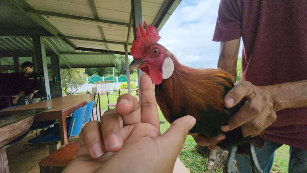 เมื่อเวลา 17.00 น. วันที่ 29 สิงหาคม 2568 น.ส.ฝน อายุ 30 ปี ชาวบ้านในพื้นที่บ้านกรอกยายชา เขตเทศบาลนครมาบตาพุด อำเภอเมืองระยองได้เล่าว่า เจ้าไก่ตัวนี้ ไปได้ไข่มาจึงเอามาฟักไว้ในตู้อบ จากนั้นมันก็ฟักออกมาเป็นตัว ตนจึงเรียกเขาว่าเจ้าจิ๊บๆ เป็นไก่ป่าตัวผู้เลี้ยงมาได้ 8 เดือน ซึ่งตนนั้นแต่ก่อนไปไหนก็เอาไปด้วยเลี้ยงเหมือนลูกไปตลาดไปสวนก็เอาใส่กรงไปด้วยตลอด