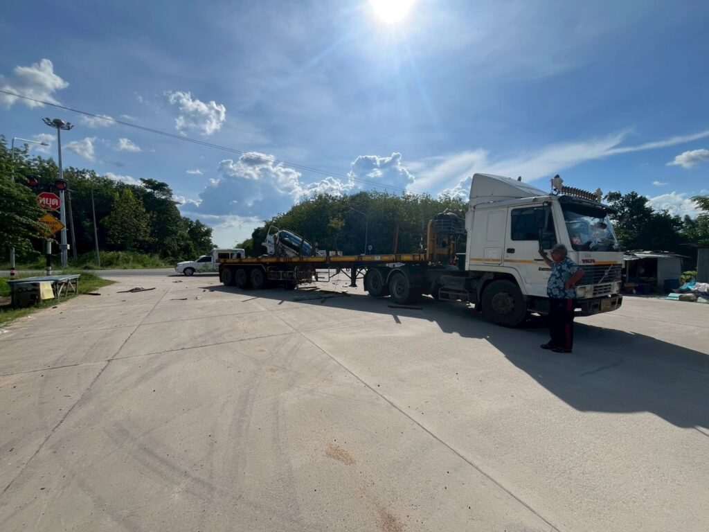 เมื่อถึงทางแยกต่างคนต่างไม่มีใครเบรคจึงทำให้รถปูนชน เข้ากับหางพ่วงเต็มๆ