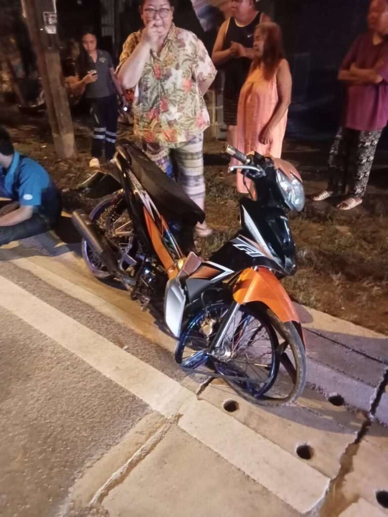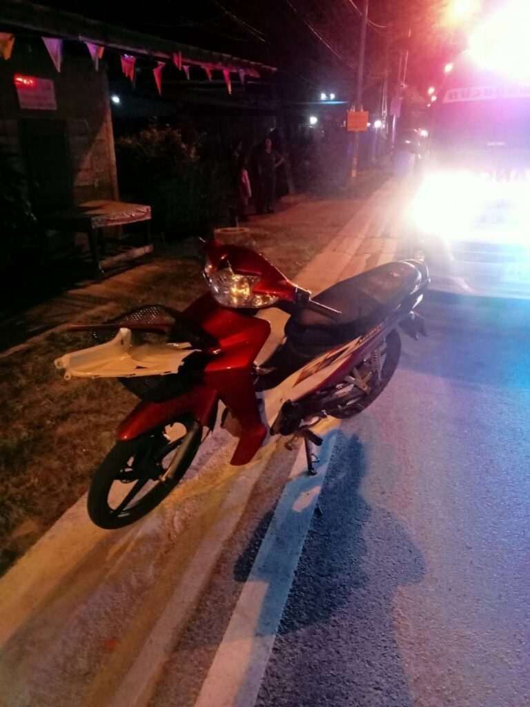 ใกล้กันพบรถจักรยานยนต์ Honda Wave สีแดงขาว มีนายภูวดล บุตรอ่อน อายุ 19 ปี เป็นคนขับ