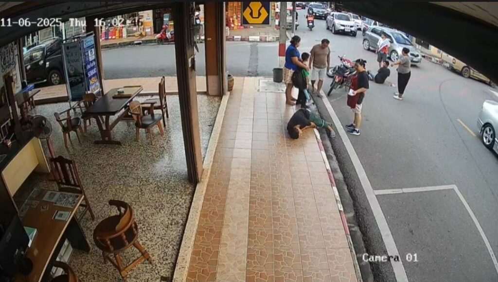 ส่วนจยย. เวฟสีแดงดำ มาจากซอยข้างธนาคารมุ่งหน้าไป เทศบาลตำบลเมืองแกลง พอถึงสี่แยกชนกันจังๆกลางแยก ขวดน้ำของน้องนักเรียนปลิวกระเด็น คุณพ่อได้รับบาดเจ็บส่วนลูกโชคดีที่ไม่เป็นอะไร ด้วยความเป็นห่วง รีบลุกขึ้นมา และดึงพ่อให้ลุก ส่วนพ่อนั้น บาดเจ็บ จึงยังไม่สามารถลุกได้ส่วนชาย อีกคนนั้น โชคดีที่ ขณะรถล้มตัวอยู่บนตัวรถจึงไม่เจ็บเท่าไหร่ ก่อนจะไปดู 2 พ่อลูกและยกรถขึ้นจากนั้นเดินไปดูเด็กเพราะเห็นว่าเด็กปลอดภัยตัวเองมานอนอยู่ตรงฟุตบาทเนื่องจากจุก ที่หน้าอก
