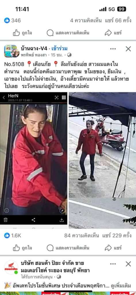 เมื่อเวลา 16.00 น.วันที่ 13 พฤศจิกายน 2568 จากกรณีมีโพสต์เตือนภัยตามกลุ่มโซเชียลต่างๆถึงภัยจากสาวเสื้อแดง ก่อเหตุขโมยของร้านค้าของชำตามย่านชุมชนในพื้นที่อำเภอบ้านฉาง และ อำเภอเมืองระยอง