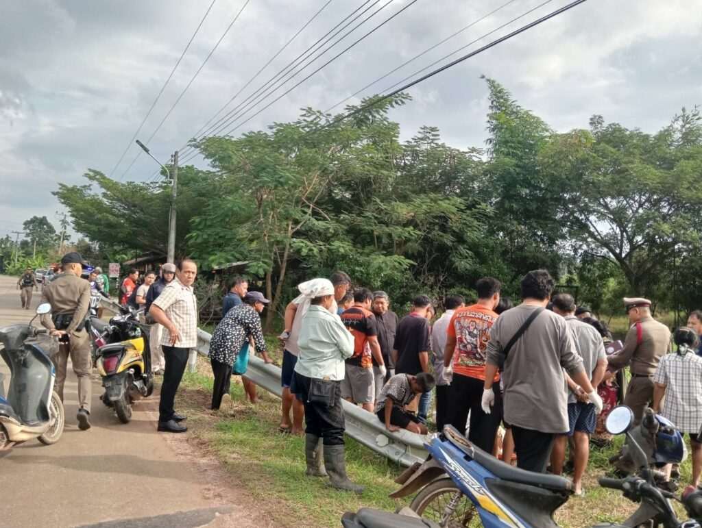ที่เกิดเหตุ นายบุญตาอายุ 70 ปี นอนตะแคงข้างซ้าย ที่หัวยังมีไฟฉายส่องกบ สวมกางเกงขาสั้น สีดำ เสื้อยืดสีเขียว ปลายเท้า มีถัง ใส่หอยอยู่เต็ม
