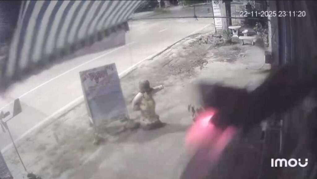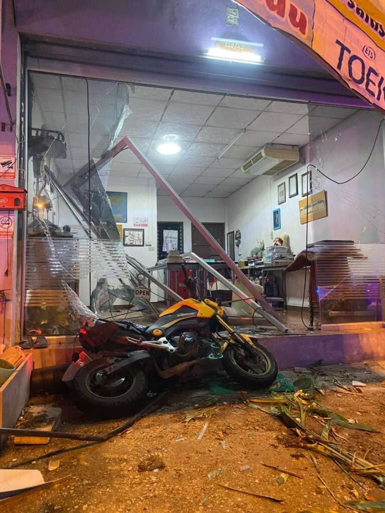 โดยภาพจากกล้องวงจรปิดจะเห็นว่าเมื่อช่วงเวลา 23:00 น. ของวันที่ 22 พฤศจิกายน 2568 อยู่ๆก็มีรถจักรยานยนต์พุ่ง ชนเข้ามาที่กลางกระจกหน้าร้าน เรียกได้ว่าบินมาเลยทีเดียว จนทำให้ผู้ขับขี่เป็นชาย อายุ 30 ปี กระเด็นออกจากตัวรถ ไปนอนได้รับบาดเจ็บสาหัสอยู่ที่ฟุตบาทหน้าร้าน