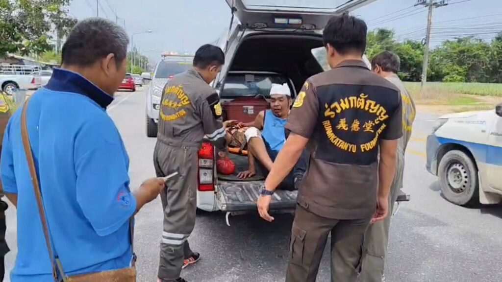 กู้ภัยห้ามได้ทันหนุ่มขับซาเล้งเมา อ้างตนเป็นเขมรหวิดมีเรื่องกับญาติคนเจ็บ