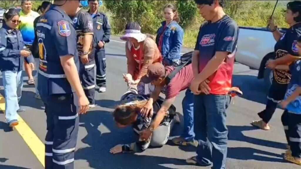 ที่เกิดเหตุพบเป็นชายชาวกัมพูชา อายุ 18 ปีนอนเสียชีวิตอยู่ข้างการ์ดเรลถนน พบกะโหลกศีรษะเปิดมันสมองไหลกระจายเกลื่อนถนน เจ้าหน้าที่กู้ภัยสว่างพรกุศล ใช้ผ้าขาวมาคลุมร่างและเก็บ มันสมองไว้ให้ ห่างไปประมาณ 50 เมตร พบ รถจักรยานยนต์สีน้ำเงิน สภาพด้านหน้าพังยับ