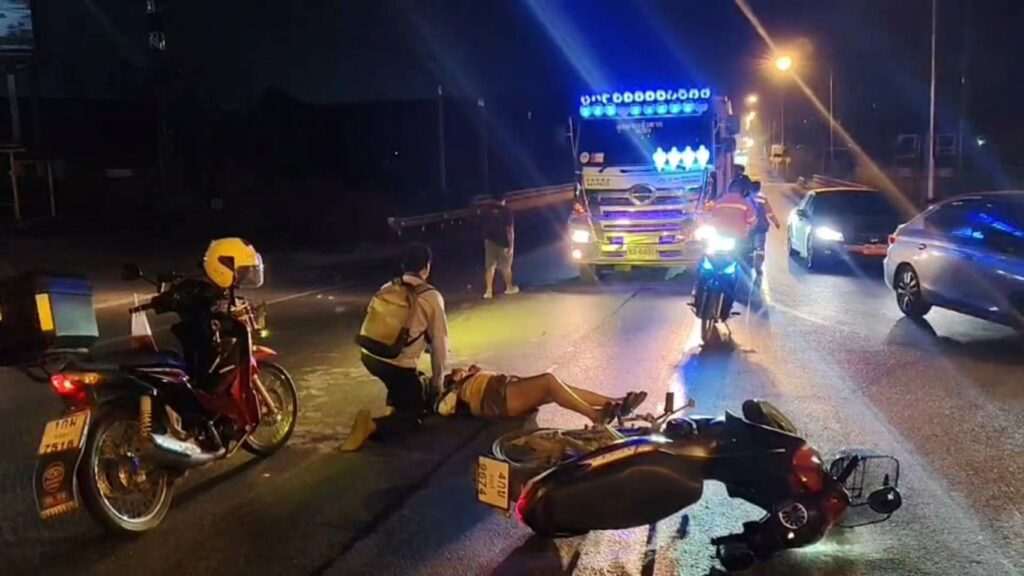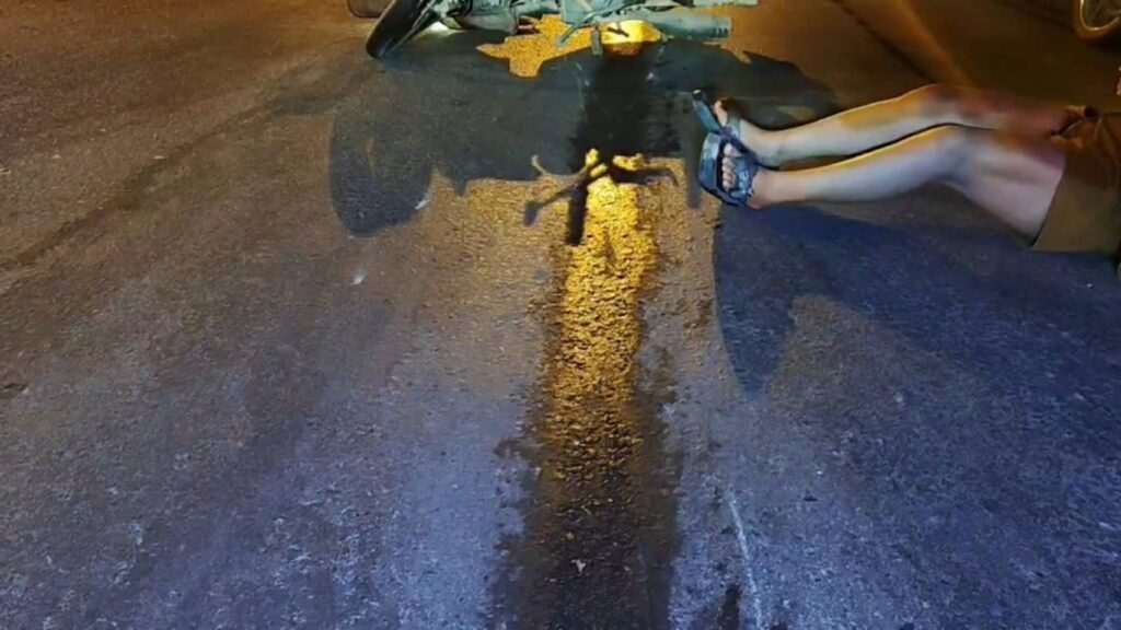 น้ำมันหกกลางถนนสาวขับรถลื่นล้มบาดเจ็บ