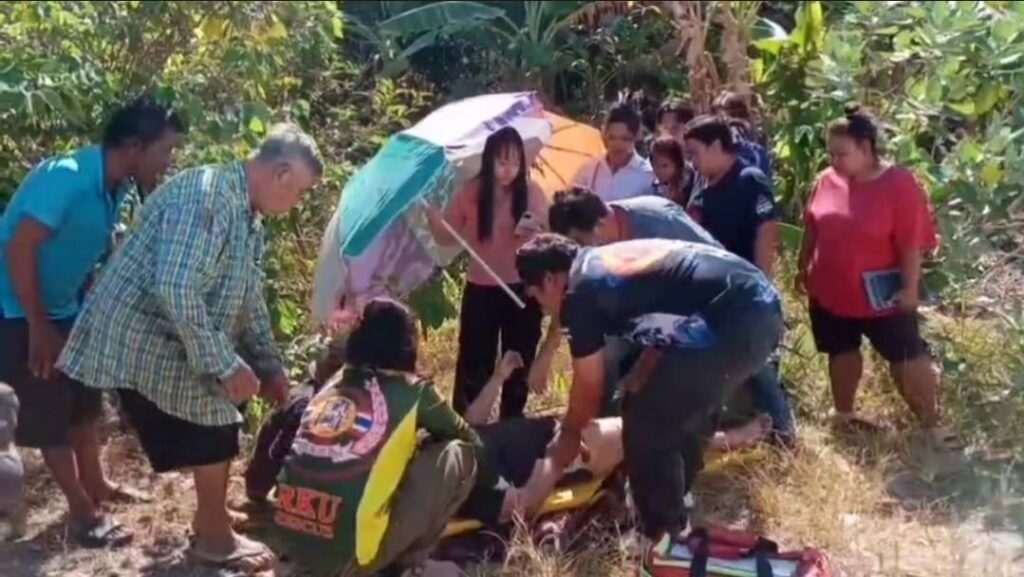 ในที่เกิดเหตุบริเวณทางโค้ง พบรถจักรยานยนต์ล้มคว่ำอยู่ใกล้กับรถกระบะคู่กรณี ใกล้กันพบผู้บาดเจ็บเป็นเยาวชนหญิง 1 ราย ทราบชื่อคือ นางสาวการ์ตูน (นามสมมติ) อายุ 15 ปี สภาพมีบาดแผลตามร่างกายและได้รับบาดเจ็บทางช่องปาก พบฟันหักหลายซี่ เจ้าหน้าที่กู้ภัยเร่งให้การปฐมพยาบาลเบื้องต้น ก่อนจะนำตัวส่งโรงพยาบาลศรีระยองตามความประสงค์ของทางญาติเพื่อให้แพทย์ทำการรักษาต่อไป