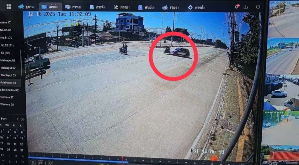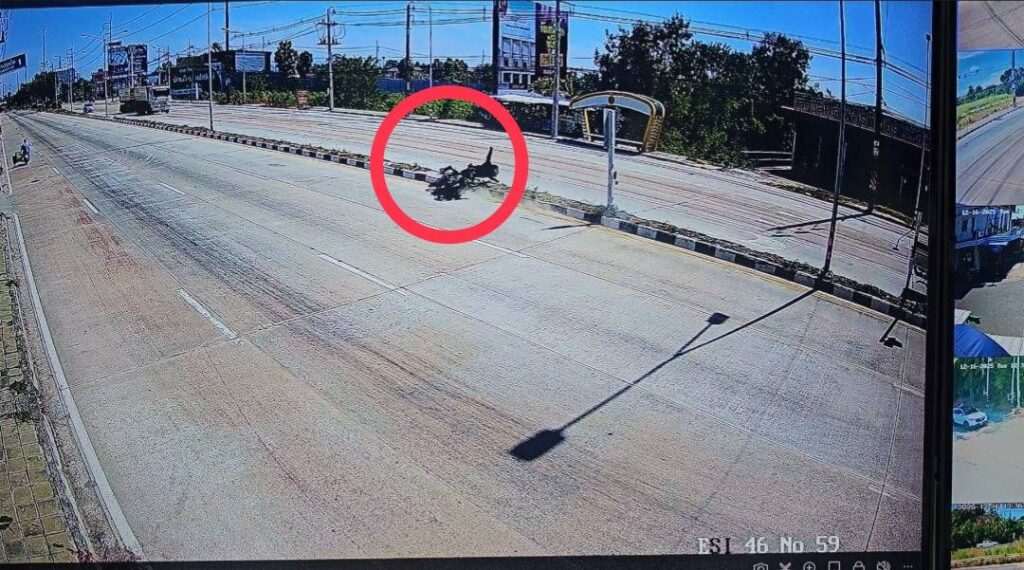 ​จากภาพหลักฐานกล้องวงจรปิดเผยให้เห็นนาทีชีวิต ขณะที่รถจักรยานยนต์ Kawasaki Ninja สีเขียว ขับมาทางตรงด้วยความเร็วปกติ ในจังหวะนั้นได้มี รถเก๋งสีขาว (ไม่ทราบป้ายทะเบียน) ซึ่งเพิ่งขับออกมาจากร้านอาหารข้างทาง พยายามจะเลี้ยวตัดเลนเพื่อไปเข้าจุดยูเทิร์นฝั่งตรงข้ามอย่างกระชั้นชิด ทำให้รถบิ๊กไบค์ที่มาทางตรงเบรกไม่ทัน พุ่งชนเข้าที่ด้านหน้าข้างขวาของรถเก๋งอย่างจังจนร่างคนขับกระเด็นตกจากรถ