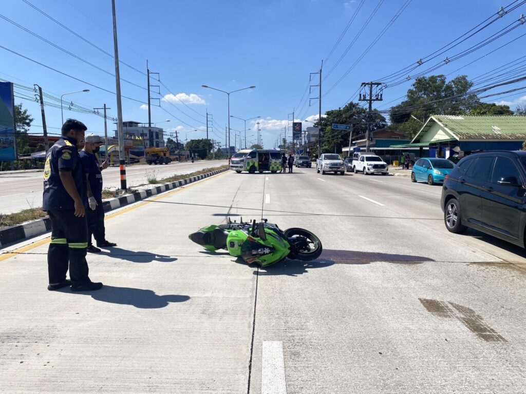 ระทึก! เก๋งเลี้ยวตัดหน้า บิ๊กไบค์เบรกไม่ทันชนสนั่นเจ็บสาหัส ก่อนขับหนีหน้าตาเฉย