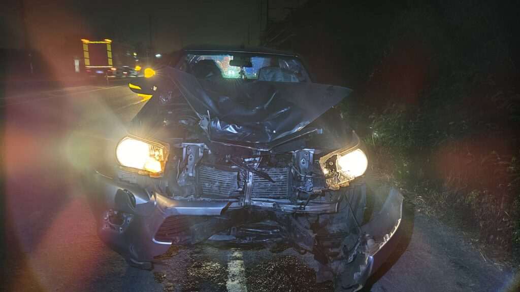 นายโอม อายุ 34 ปี คนขับรถกระบะ ซึ่งเดินทางมาจาก จ.ฉะเชิงเทรา เล่าด้วยอาการตื่นตระหนกว่า ขณะกำลังมุ่งหน้าไปหาญาติ เมื่อถึงจุดเกิดเหตุรถจักรยานยนต์ที่วิ่งสวนมาได้เลี้ยวขวาตัดหน้าเพื่อเข้าซอยอย่างกะทันหัน ตนพยายามเบรกแล้วแต่ไม่ทัน และไม่สามารถหักหลบได้เนื่องจากมีรถวิ่งสวนมาอีกเลน หลังเกิดการชน ระบบเบรกของรถใช้การไม่ได้ ทำให้รถไหลไปไกลกว่า 500 เมตร ทั้งนี้ในท้ายรถกระบะยังมี “เจ้าเสือ” สุนัขที่โดยสารมาด้วย ซึ่งตกใจจนอาเจียนเต็มท้ายรถแต่ไม่ได้รับบาดเจ็บ