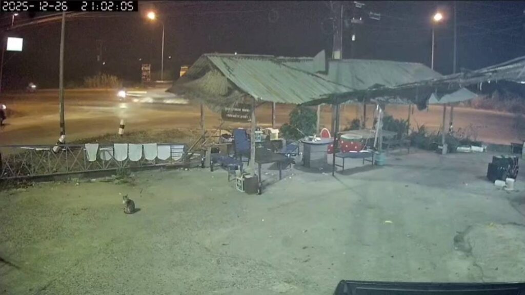 โดยกล้องวงจรปิดจับภาพวินาทีรถจักรยานยนต์เลี้ยวตัดหน้ากระบะในระยะกระชั้นชิด เป็นเหตุให้ถูกชนอย่างจัง ร่างคนขับลอยข้ามหลังคารถตกกระแทกพื้นอาการโคม่า