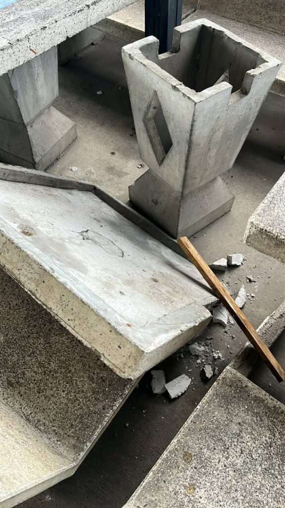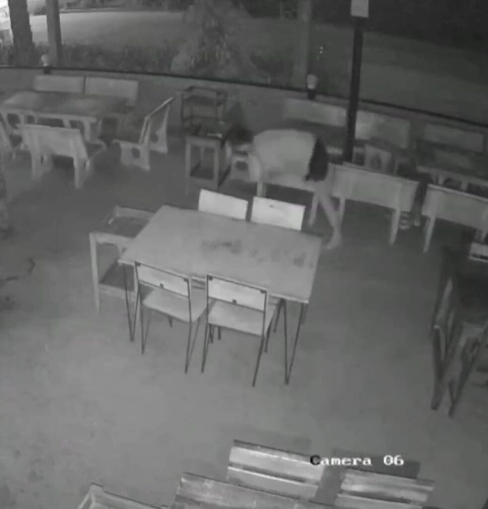 ในขณะที่คนร้ายกำลังเดินสำรวจรอบๆ และพยายามจะก้าวข้ามโต๊ะม้าหินอ่อนภายในร้านเพื่อเข้าไปยังพื้นที่ด้านใน ปรากฏว่าคนร้ายเกิดก้าวพลาด เหยียบ บนโต๊ะม้าหินอ่อนอีกฝั่งหนึ่งซึ่งไม่มีถาดรองทำให้ โต๊ะเอียง และ ตัวของคนร้ายกำลังก้าว พลาดตกโดนขอบของเก้าอี้ไม้หินอ่อนกระแทก วางขายอย่างจัง แรงกระแทกส่งผลให้คนร้ายถึงกับแสดงอาการจุกและเจ็บปวดอย่างหนัก หยุดนิ่งอยู่สักพักนึง จากนั้นเดินพยุงตัวกะเผลก เซเกือบล้มอีกรอบ จรใช้เวลาอยู่ภายในร้านเกือบ 10 นาทีพยายามเดินค้นหาของมุมต่างๆ