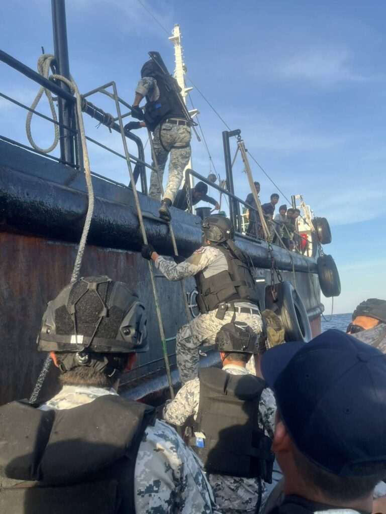 จากการตรวจสอบบนเรือมีกำลังพล 8 นาย เป็นคนไทย 3 คน เมียนมา 1 คน กัมพูชา 4 คน ไม่มีเอกสารการทำงาน ไม่มีหนังสือเดินทาง คนประจำเรือให้การวกวนมีพิรุธ ไม่สอดคล้องกัน ไม่มีเอกสารสำคัญประจำเรือ ในระวางของเรือบรรทุกน้ำมันดีเซล ประมาณ 10,000 ลิตร เบื้องต้น ไต๋เรือ ให้การว่า ได้มารับจ้างขับเรือ ให้ไปรับน้ำมันมาจากกลางทะเล น่านน้ำมาเลเซีย นำกลับเข้าน่านน้ำไทย โดยไม่ทราบแน่ชัดว่า น้ำมันจะถูกนําไปใช้ทำอะไร จึงได้ควบคุมเรือเข้าเทียบท่าเรือจุกเสม็ด การท่าเรือสัตหีบ ฐานทัพเรือสัตหีบ อ.สัตหีบ จ.ชลบุรี เพื่อดำเนินการ สอบสวน และตรวจสอบอย่างละเอียด