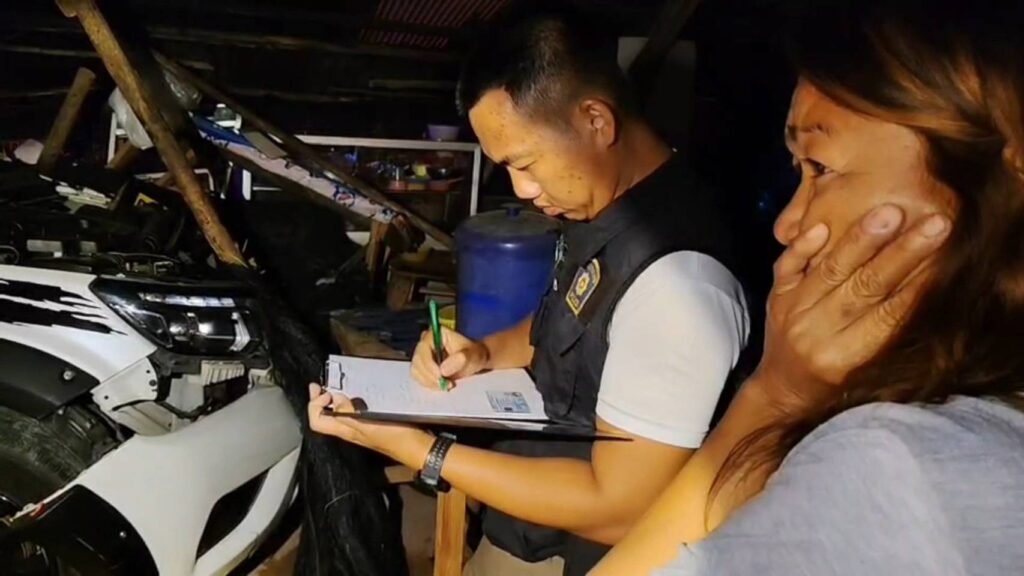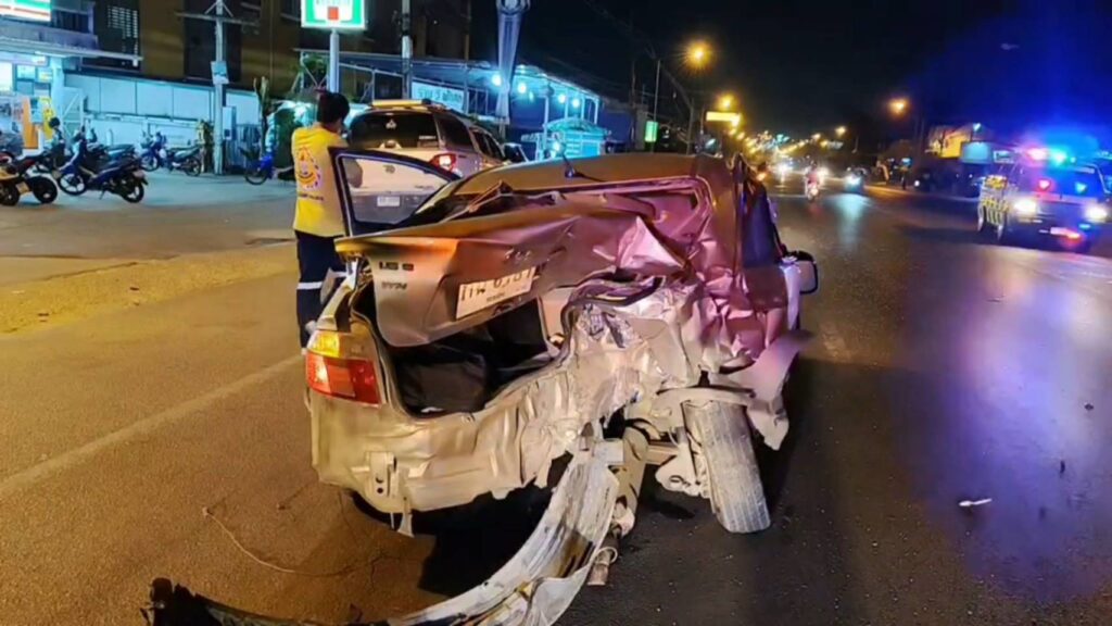 ​ที่เกิดเหตุพบรถเก๋ง Toyota Vios สีบรอนซ์ สภาพด้านท้ายถูกชนจนยุบตัวลึกไปถึงห้องโดยสาร ตัวรถหมุนกลับทิศทางไปทางสี่แยกนิคมพัฒนา “น้องชมพู่” อายุ 24 ปี คนขับรถเก๋งเล่าว่า ตนเองกำลังจะเลี้ยวเข้าเซเว่นฯ หลังจากกลับจากรับประทานหมูกะทะ แต่จู่ๆ ก็ถูกรถคู่กรณีพุ่งชนท้ายอย่างรุนแรงจนรถหมุนเคว้ง โชคดีที่ได้รับบาดเจ็บเพียงเล็กน้อย