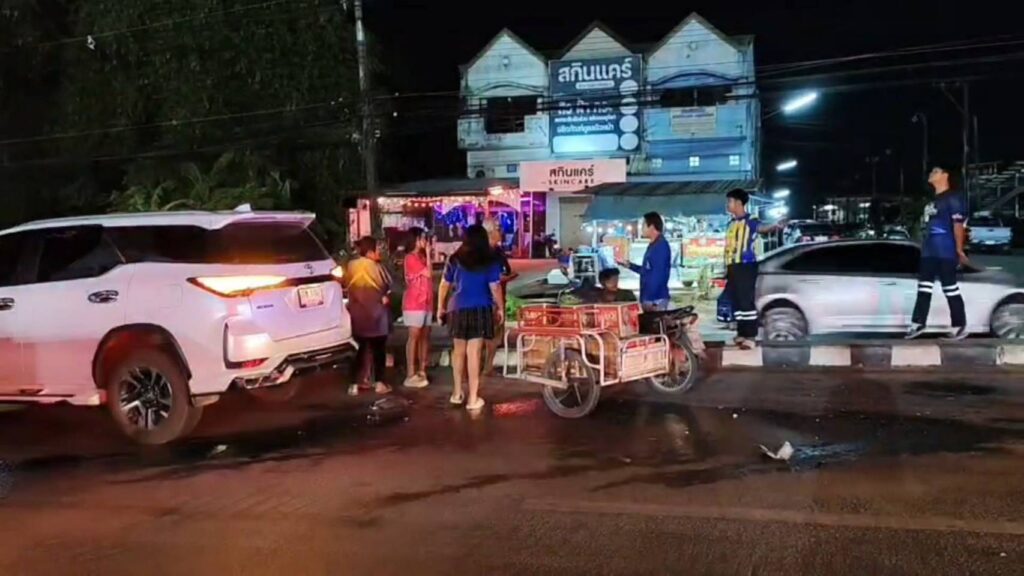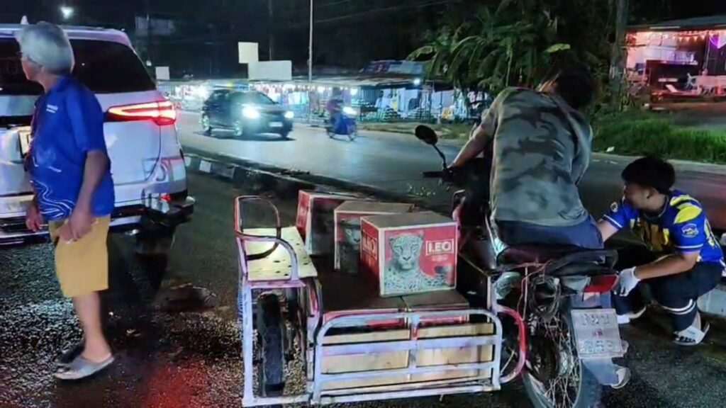 กลิ่นเบียร์ฟุ้ง ซาเล้งขนเบียร์ 10 ลัง เบรกไม่ทันอัดท้ายฟอร์จูนเนอร์ “ขาติดเหล็กพ่วง” เจ็บอดฉลองปีใหม่