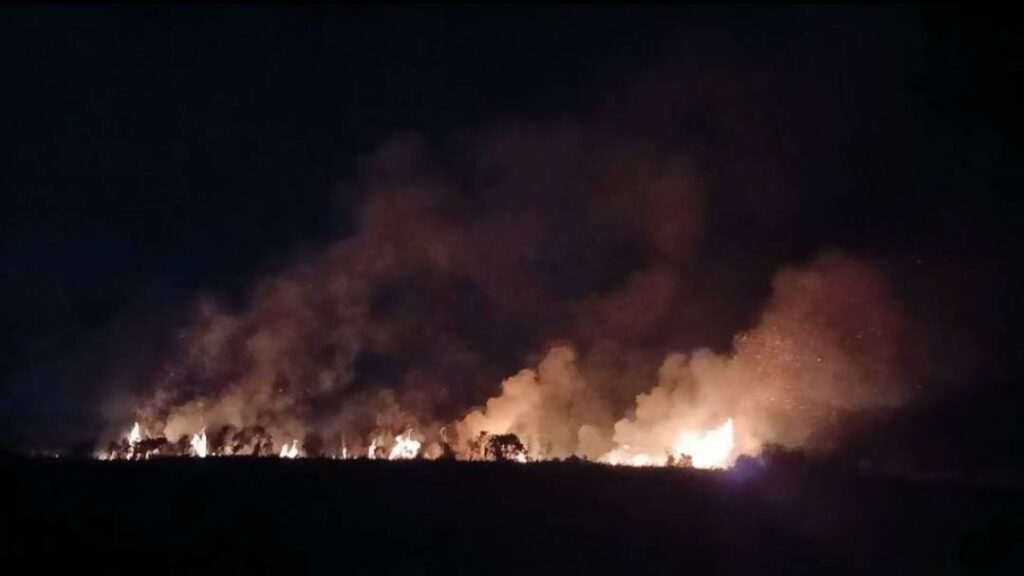 เมื่อเวลา 21.00 น. วันที่ 4 มกราคม 2569 ผู้สื่อข่าวรายงานความคืบหน้าสถานการณ์ไฟไหม้ป่าหญ้ากกและต้นเสม็ดภายใน บึงจำรุง ต.ชากพง อ.แกลง จ.ระยอง ซึ่งปะทุขึ้นตั้งแต่เวลาประมาณ 13.00 น. และยังคงลุกไหม้อย่างต่อเนื่องยาวนานกว่า 8 ชั่วโมง