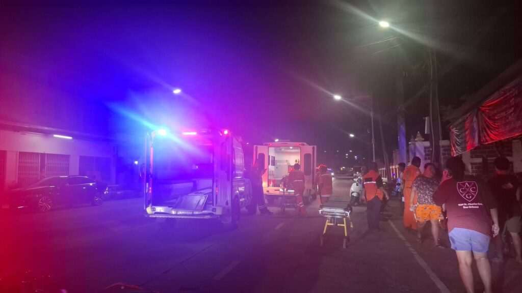 เจ้าหน้าที่กู้ภัยเร่งปฐมพยาบาลเบื้องต้นก่อนนำตัวส่งโรงพยาบาลแกลงอย่างเร่งด่วน