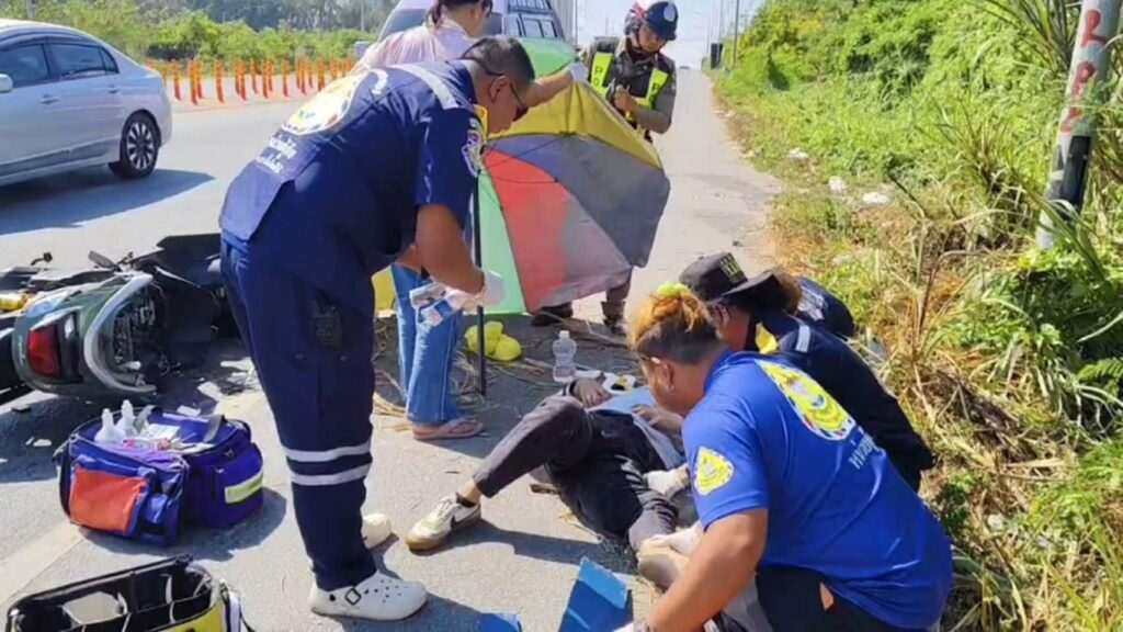 หนุ่มเมาหนัก ขับจยยเสาไฟส่องสว่าง กู้ภัยปฐมพยาบาล ร้องหาแม่ลั่น กู้ภัยจะฆ่าข่อยแล้ว จนท.กู้ภัยต้องพูดภาษาถิ่นด้วย ว่ามาช่วย จะพาไปสวรรค์