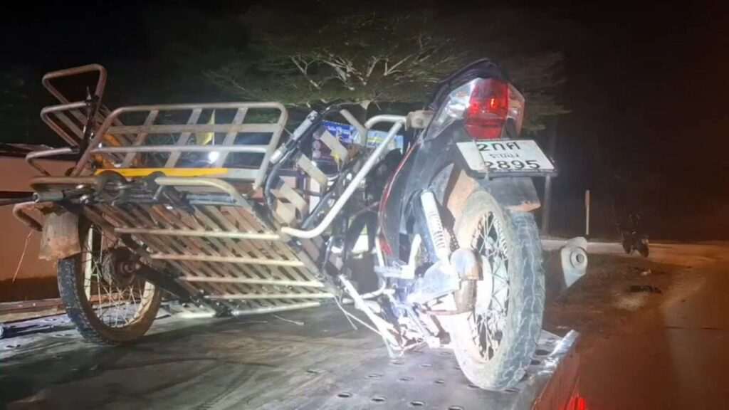 ระยองสลด! พ่วงข้างพม่าขี่ลัดเลนย้อนศร ประสานงาเก๋งสนั่นลากไกล 20 เมตร ดับที่ รพ.ล้อพ่วงข้างติดหน้ารถเก๋ง