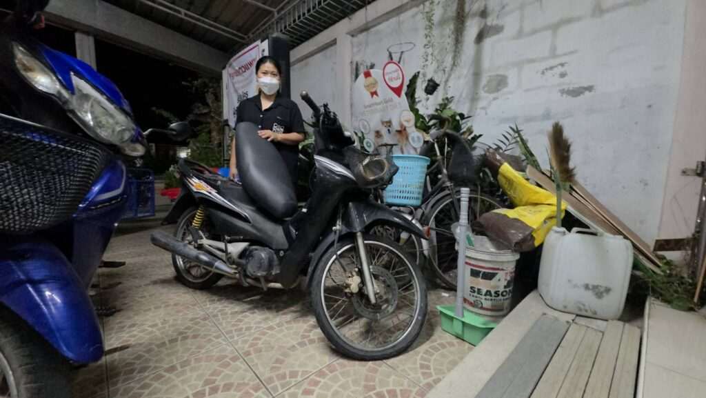 ตนนั้นล้มลงไปแล้วรู้สึกแน่นหน้าอก หายใจไม่ออก รู้เลยว่าอาการโรคหัวใจกำเริบ ตนพยายามตะโกนและกวักมือเรียกให้บังช่วย แต่บังกลับเดินไปหยิบหมวกกันน็อกแล้วขี่รถหนีไปเลย โชคดีมากที่มีพลเมืองดีแถวนั้นเห็นเหตุการณ์รีบเข้ามาช่วย และตะโกนเรียกสามีตนที่อยู่ไม่ไกลให้มาอุ้มตนขึ้นก่อนประสานกู้ภัยนำส่งโรงพยาบาลบ้านฉาง