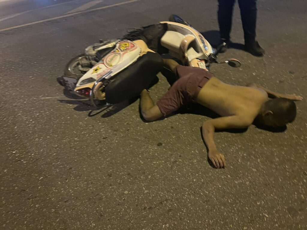 ในที่เกิดเหตุพบรถยนต์เก๋งจอดอยู่กลางถนน พบบริเวณ ประตูฝั่งคนขับและประตูหลังมีรอยบุบพังเสียหาย กระจกมองข้างหักหลุดออก ใกล้กันพบรถคู่กรณีเป็นรถจักรยานยนต์สีขาว-ชมพู สภาพหน้ารถแตกพังยับเยิน โดยมีผู้ขับขี่เป็นชายไม่สวมเสื้อ นอนคว่ำหน้าอยู่กลางถนน มีแผลถลอกตามร่างกาย กู้ภัยจึงเร่งให้การปฐมพยาบาล