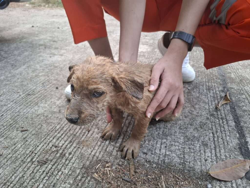 หลังจากที่เจ้าหน้าที่กู้ภัยช่วยลูกหมาขึ้นมาได้แล้วนั้น ลูกหมาที่ตกน้ำพบว่าเป็นตัวเมีย เจ้าหน้าที่กู้ภัยจึงนำผ้ามาช่วยเช็ดขน เช็ดตัวให้แห้ง