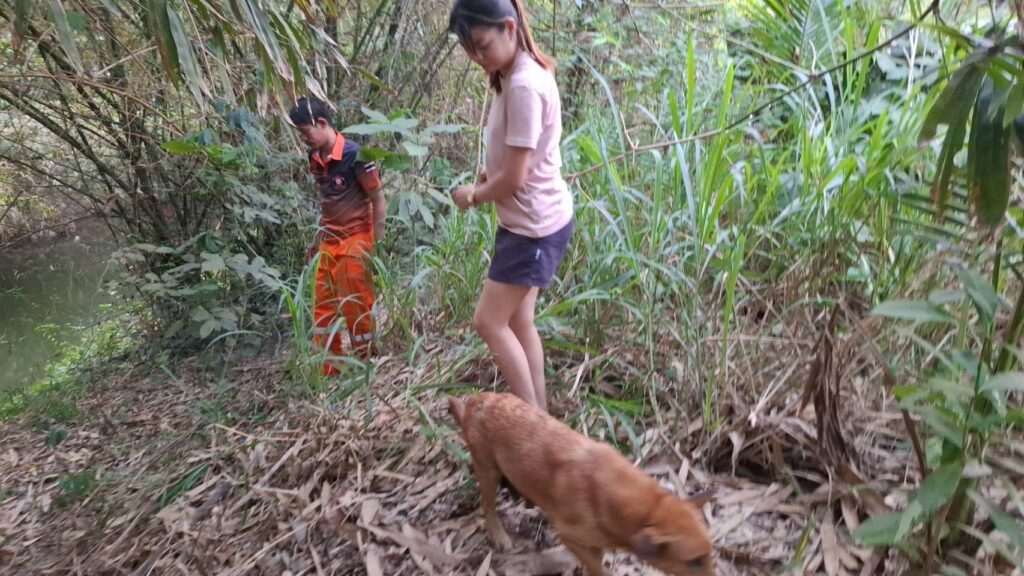นางมาลัย หนูหริ่ง (ชาวบ้านในพื้นที่) เล่าว่า ตนได้ยินเสียงลูกหมาและแม่หมาร้องจึงตามเสียงนั้นมา พอมาถึงก็เห็นว่าลูกหมาตกน้ำซึ่งตอนพยายามจะช่วยแล้วแต่ด้วยความลาดชันจึงไม่สามารถช่วยได้แม่หมาก็นั่งเฝ้าอยู่ไม่ห่างกระวนกระวาย