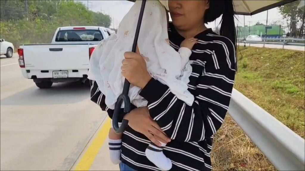 สัญชาตญาณแม่! ยอมตายถวายหัว กอดลูกน้อย 4 เดือนแนบอก นาที 6 ล้อขนแม็คโครยางบึ้มพลิกคว่ำสาย 36 จุดเดิมต้นสะเดาเฮี้ยน