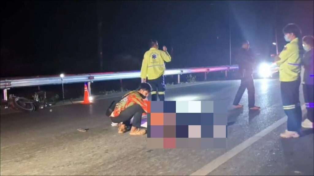 สยองกลางดึก! ถนนสุขุมวิทกลายเป็นลานประหาร เมื่อหนุ่มใหญ่ขี่ จยย. ออกจากวงเหล้าได้เพียงร้อยเมตร ก่อนพลาดท่าพุ่งมุดใต้ท้องรถพ่วงขนยางมะตอย ถูกล้อเหยียบร่างแหลกชิ้นส่วนกระจายเกลื่อนถนน ลูกชายมาเห็นสภาพพ่อถึงกับคุมสติไม่อยู่ ปล่อยโฮสลับด่ากราด ก่อนพุ่งชกหน้าคนขับคู่กรณีกลางที่เกิดเหตุ!