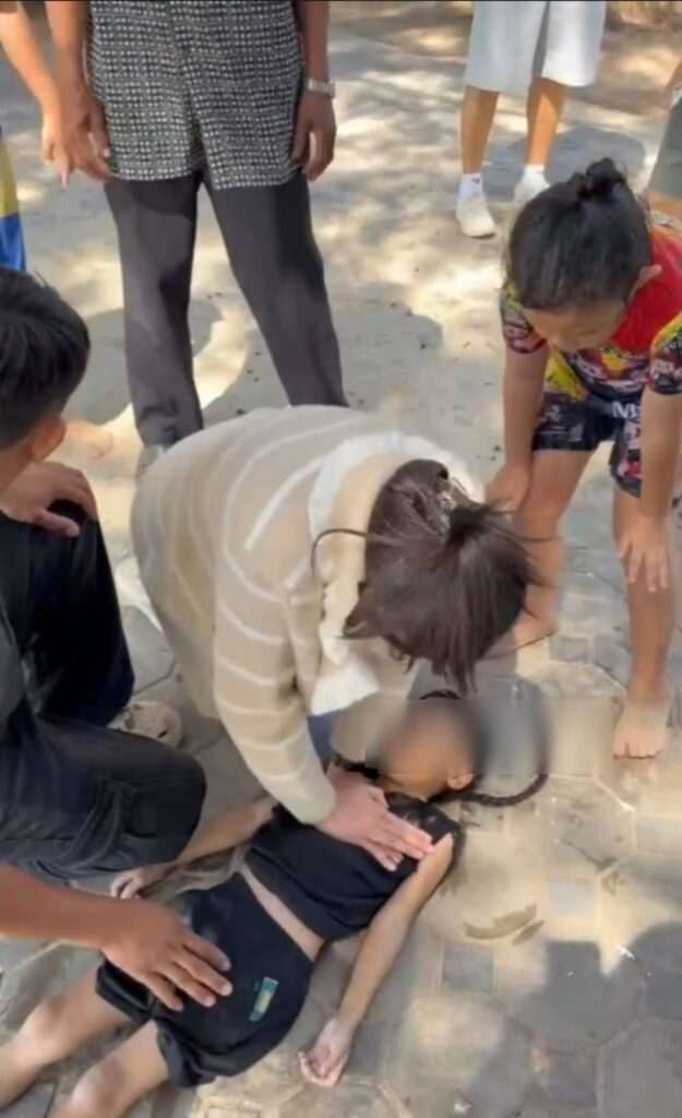 โดยมี น.ส.สาธิกา ขันวงษ์ อายุ 26 ปี พลเมืองดีอีกรายที่สวมเสื้อคลุมสีครีมแขนยาว เข้ามาสนับสนุนการช่วยเหลือ ซึ่ง น.ส.สาธิกา ระบุว่าตนทำงานเป็นเจ้าหน้าที่ Safety ของบริษัทแห่งหนึ่งและเคยผ่านการอบรม CPR มา จึงตัดสินใจเข้าช่วยปั๊มหัวใจและเป่าปากน้องต่อเนื่องนานกว่า 20 นาที ด้วยความหวังเพียงขอให้น้องฟื้นกลับมา