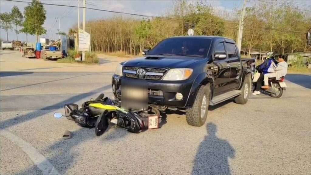 อุทาหรณ์ แซงขวา จยย.ชนsuv สาวซ้อนท้ายตก เจ็บ