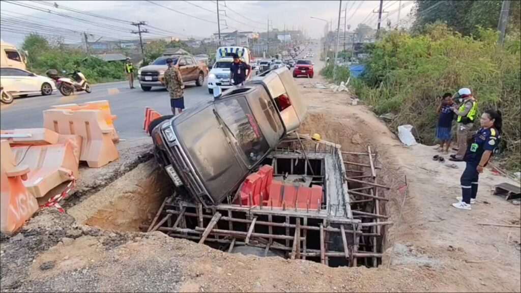 ​ เมื่อเวลา 07.00 น. วันที่ 4 ก.พ. 2569 เกิดเหตุระทึกขวัญบนถนนสาย 3191 ช่วงก่อนถึง สภ.นิคมพัฒนา จ.ระยอง เมื่อรถกระบะรับส่งพนักงานพุ่งตกไปในหลุมก่อสร้างตอม่อขนาดใหญ่กลางถนน แต่โชคดีไม่มีใครได้รับอันตรายร้ายแรง