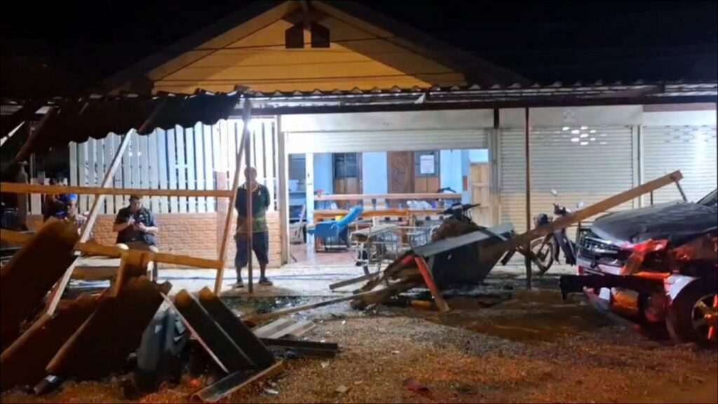 ตรวจสอบ ความเสียหายเบื้องต้นพบ บ้านเรือนเสาบ้านหัก หลังคาถล่ม พื้นที่หน้าบ้านพังเสียหายยับเยิน รถยนต์เสียหายหนัก 3 คัน ปาเจโร่, เก๋งโตโยต้า, กระบะและรถจักรยานยนต์เสียหาย 2 คัน