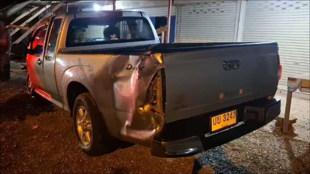 เมื่อเวลา 20.00 น. วันที่ 8 กุมภาพันธ์ 2569 เจ้าหน้าที่ตำรวจ สภ.แกลง จังหวัดระยอง ได้รับแจ้งมีอุบัติเหตุรถยนต์เฉี่ยวชนกันหลายคันจนพุ่งเข้าไปในบ้านเรือนประชาชน บริเวณชุมชนบ้านเนินทราย ตำบลเนินฆ้อ อำเภอแกลง จังหวัดระยอง จึงรีบรุดไปตรวจสอบที่เกิดเหตุ ในที่เกิดเหตุพบความเสียหายอย่างหนัก บริเวณหน้าบ้านไม้กึ่งปูน เลขที่ 18/2 หมู่ 1 ตำบลเนินฆ้อ อำเภอแกลง จังหวัดระยอง ลักษณะเป็นที่พักอาศัยและพื้นที่นั่งเล่น พบรถยนต์พังเสียหายรวม 3 คัน และรถจักรยานยนต์อีก 2 คัน ถูกโครงสร้างหลังคาบ้านพังลงมาทับจนมิด