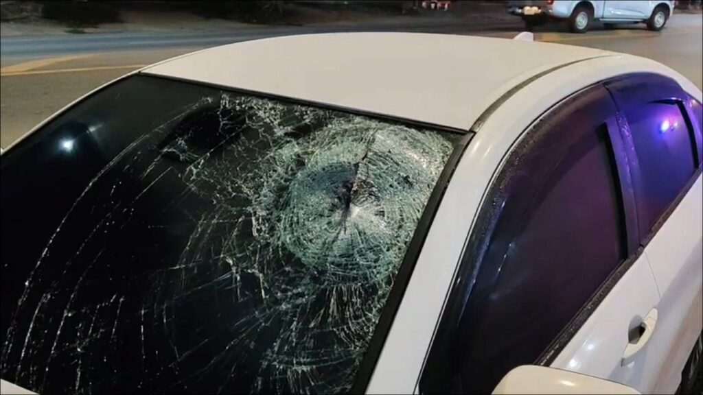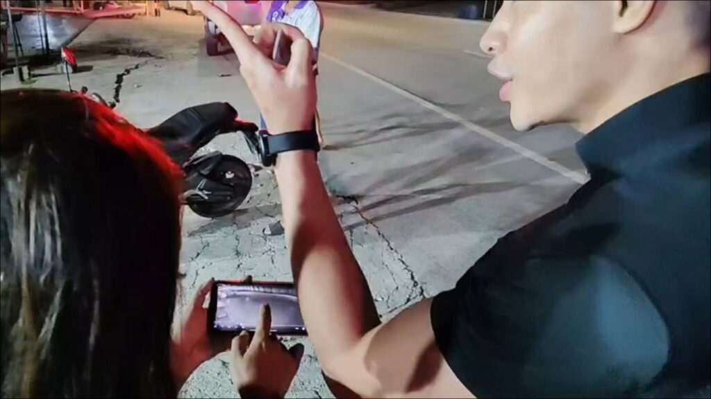 ที่เกิดเหตุพบรถเก๋งสีขาวสภาพด้านหน้าพังยับเยิน กระจกหน้ามีรอยร้าวขนาดใหญ่จากการกระแทก ห่างออกไปเกือบ 100 เมตร พบรถจักรยานยนต์คู่กรณีถูกชนจนกระเด็นไปอัดติดกับเสาป้ายโฆษณา สภาพท้ายรถพังเสียหายหนักของใช้กระจายเกลื่อนบนพื้นถนน พบหมวกกันน็อก 2 ใบ กระเป๋า รองเท้า และป้ายทะเบียนรถจักรยานยนต์ ขว 2493 ระยอง ตกอยู่