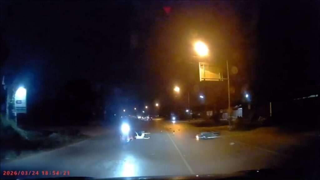 จากการตรวจสอบที่เกิดเหตุและคลิปกล้องหน้ารถ พบภาพเหตุการณ์ขณะที่รถจักรยานยนต์คันหนึ่งกำลังขับขี่มาตามปกติ ก่อนจะเกิดการเฉี่ยวชนกับรถจักรยานยนต์อีกคันบริเวณทางแยก แรงกระแทกทำให้รถล้มคว่ำและผู้ขับขี่พร้อมผู้ซ้อนท้ายกระเด็นไปบนพื้นถนน ท่ามกลางความตกใจของผู้เห็นเหตุการณ์