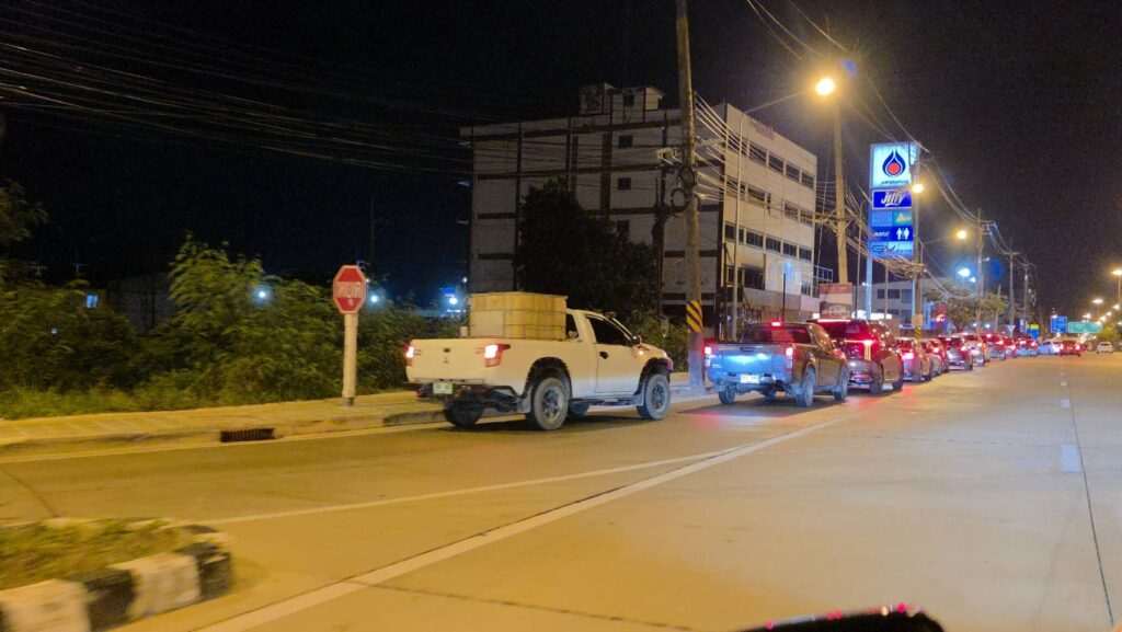 ​ ในขณะที่ชาวอำเภอบ้านฉางก็ได้แห่กันมาเข้าคิวต่อแถวเพื่อเติมน้ำมัน