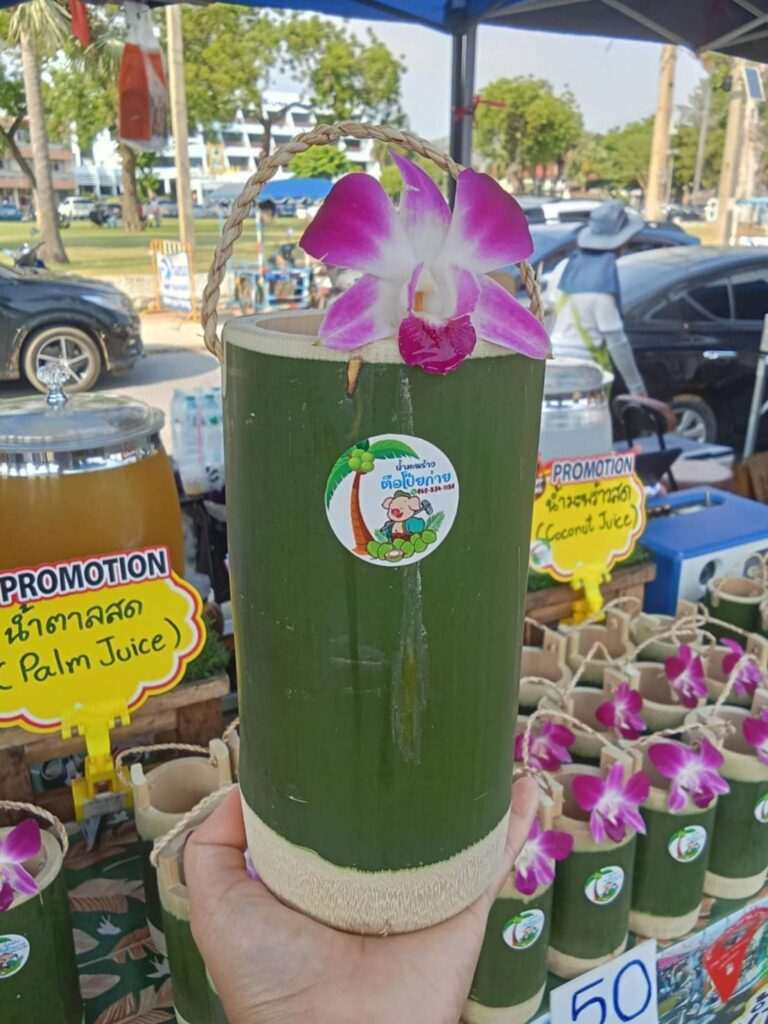 ร้านขายน้ำตาลสดและน้ำมะพร้าวได้นำภูมิปัญญาชาวบ้านมาประยุกต์ใช้เพื่อลดต้นทุนและช่วยรักษาสิ่งแวดล้อม โดยการนำแก้วไม้ไผ่มาใช้บรรจุน้ำแทนแก้วพลาสติก พร้อมออกโปรโมชันมัดใจลูกค้าในระยะยาว