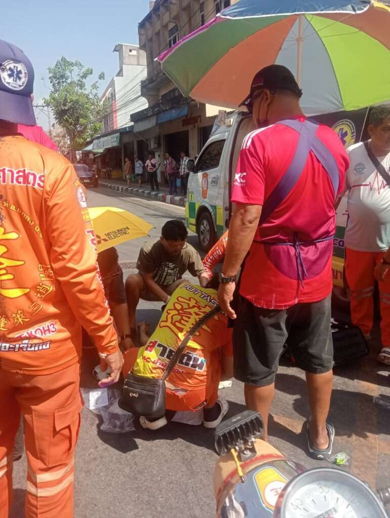 พ่อค้ากล้วยทอดใจหล่อทิ้งร้านช่วยคนเจ็บ ก่อนรีบแจ้งกู้ภัยพลิกตัวผงะเจอ “ยาบ้า” ร่วงคากางเกง
