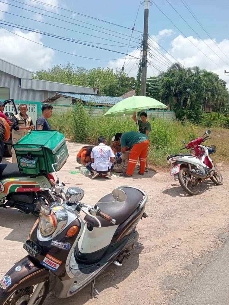 ​กู้ภัยตามวุ่นหนุ่มเมียนมาขับโฟล์คลิฟท์พุ่งพรวดตัดหน้าลุงวัย 61 ปี ขณะบิดมอเตอร์ไซค์ไปเข้าเวรหน้าวัดวังหว้า ชนโครมเข้ากับงาเหล็ก หน้าผากเหวอะเป็นแผลฉกรรจ์ ก่อนคนขับจะรีบบึ่งรถหนีเข้าโรงงานทิ้งคนเจ็บให้นอนจมกองเลือด