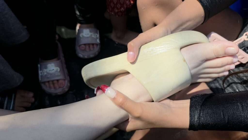 ขณะเดียวกันหนุ่มน้อย รายหนึ่งอาการหนักเกินเยียวยา รองเท้ารัดแน่นจนเลือดแทบไม่เดิน สุดท้ายต้องคว้ากรรไกรมา ตัดรองเท้าทิ้ง ยอมสูญเสียทรัพย์สินเพื่อรักษาขาเอาไว้