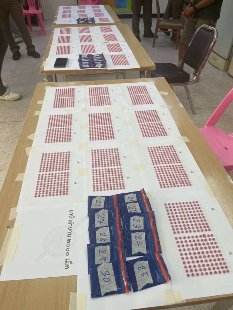 แต่เพียงแค่เปิดประตูรถฝั่งคนขับ เจ้าหน้าที่สังเกตเห็นความผิดปกติที่เบาะนั่ง เมื่อลองงัดแงะตรวจสอบดูถึงกับต้องตะลึง! พบพัสดุพันด้วยเทปสีเหลืองซุกซ่อนอยู่ใต้เบาะ เมื่อแกะออกมาพบว่าเป็น “ยาบ้า” หรือเมทแอมเฟตามีน จำนวนมหาศาลถึง 6,060 เม็ด ถูกมัดรวมไว้รอส่งต่อ