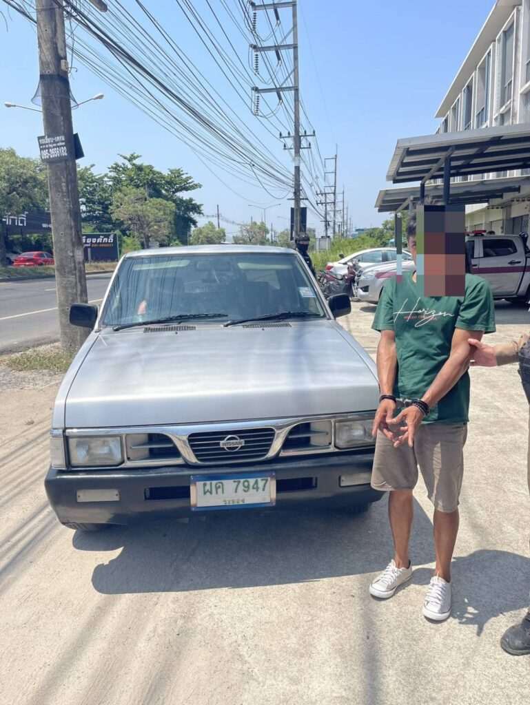 นายสาโรจน์ ผู้ต้องหาซึ่งสวมเสื้อยืดสีเขียวและกางเกงขาสั้นสีเทา ยืนหน้าถอดสีอยู่ข้างรถ ยอมจำนนต่อหลักฐานชัดเจน เจ้าหน้าที่จึงทำการควบคุมตัวพร้อมของกลางทั้งหมดมาที่ สภ.เมืองระยอง